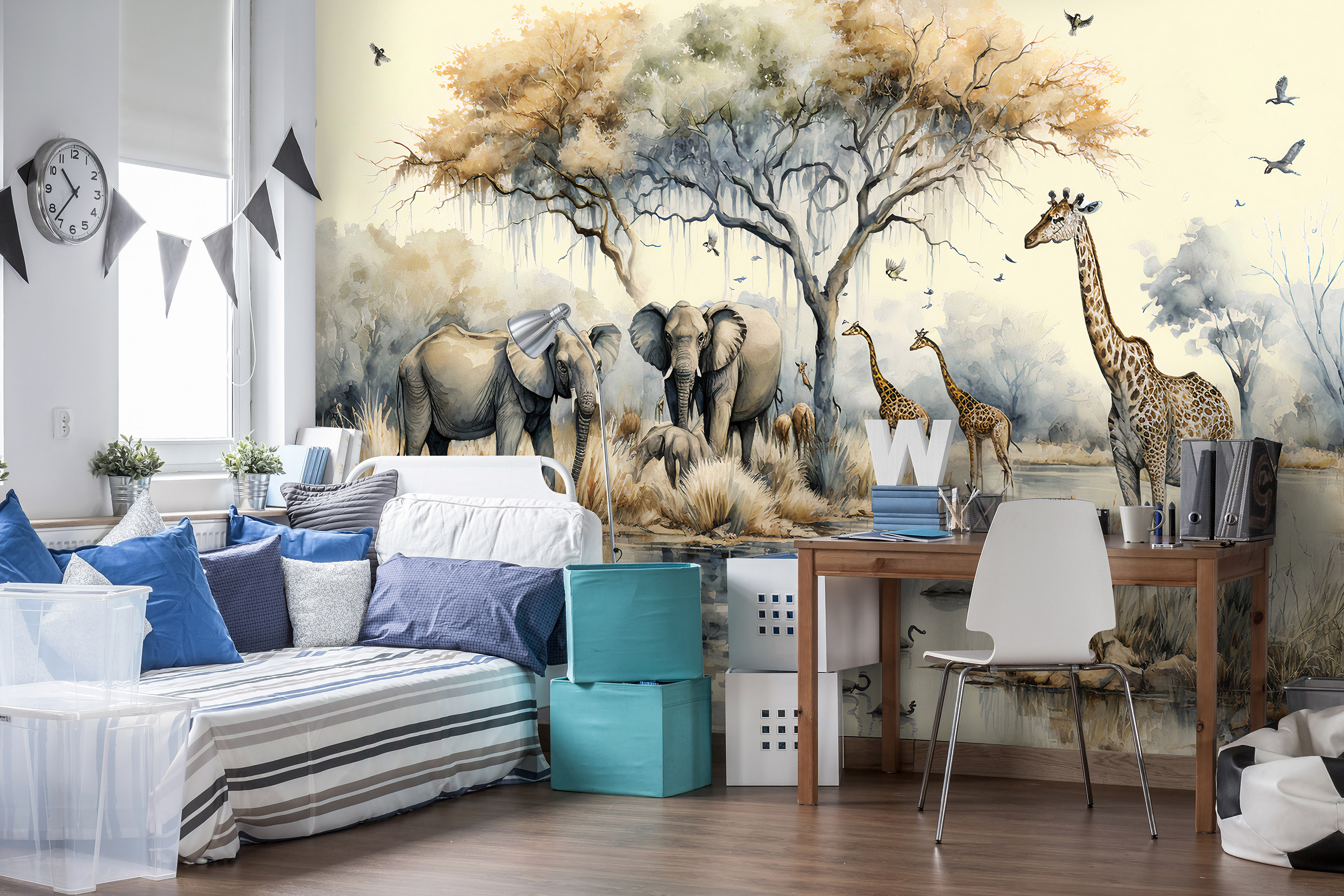 Förvandla lekrum, barnrum och sovrum till magiska världar med Djungeldjur Akvarellmålning fototapet. Den här lekfulla och färgglada tapeten är skapad för att glädja och inspirera ditt barn, med älskade djur, fantasifulla äventyr och sagokaraktärer direkt på väggen. Tryckt på säker och miljövänlig non-woven-väv med starka färger och fina detaljer. Enkel att montera med medföljande lim. Djungeldjur Akvarellmålning tapet väcker fantasin, lärandet och glimten i ögat – varje dag blir roligare och varje rum extra speciellt.