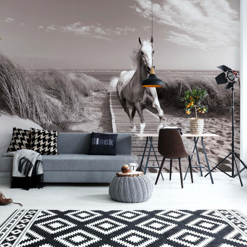 Ta in djurens skönhet i ditt hem med "Vit Häststrand Svartvitt" djurfototapet. Med fantastiska, högupplösta fotografier av majestätiska djur som leoparder, tigrar, hästar och vargar, tillför denna tapet en livfull och naturlig känsla till vilket rum som helst. Tryckt på högkvalitativ och miljövänlig non-woven-väv med avancerad digitaltryckteknik, inkluderar varje tapet gratis lim för enkel montering. Perfekt för att skapa en levande atmosfär i vardagsrum, sovrum eller kontor, kombinerar "Vit Häststrand Svartvitt" tapeten konstnärlig elegans med hållbarhet och miljöhänsyn.