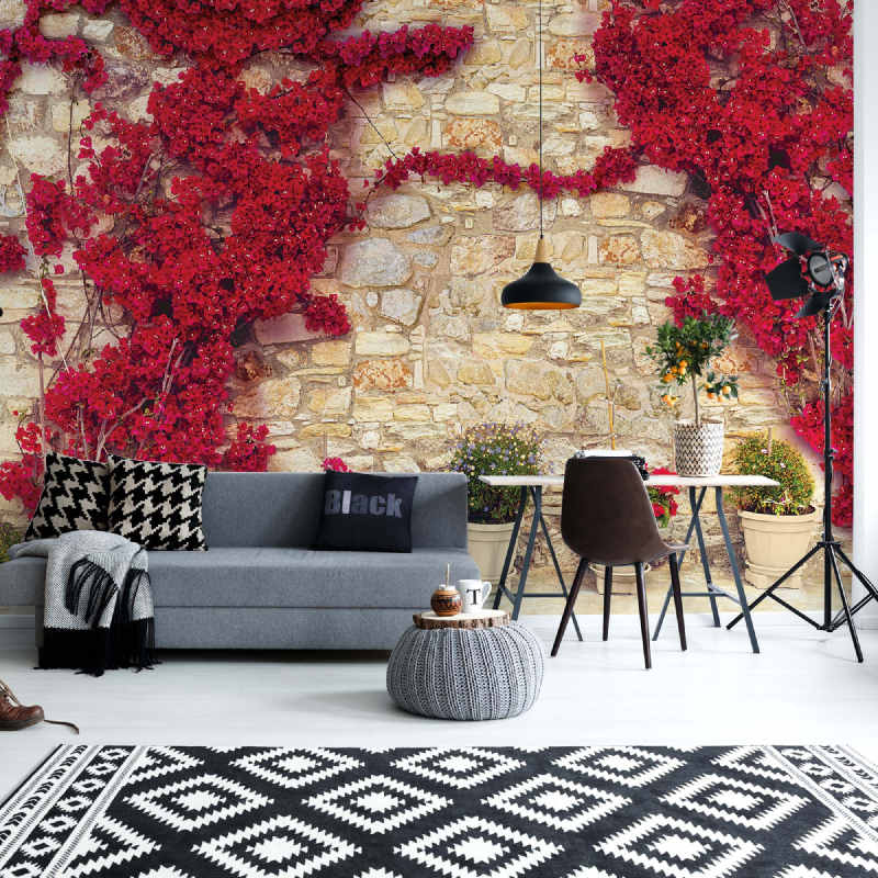 Höj ditt rum med naturliga strukturer och urban charm med Röda Blommor Gammal Stenmur fototapet. Med autentiska sten-, trä-, metall- och tegelmotiv samt rustika och konstnärliga mönster tillför denna mural djup och textur till varje rum. Tryckt med skarpa detaljer på slitstark och miljövänlig non-woven-väv. Enkel montering med medföljande lim. Perfekt för varma, texturerade eller industriellt inspirerade miljöer i hem, ateljéer eller kontor.