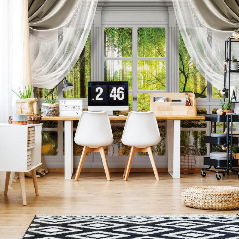 Ge rummet ett harmoniskt lyft med Skogsvy Fönster naturfototapet. Denna unika fototapet har ett storslaget motiv inspirerat av naturens skönhet, och är det perfekta valet för att snabbt ge nytt liv åt alla miljöer. Tapeten är tryckt på högkvalitativ, miljövänlig non-woven-väv med starka färger och tydliga detaljer, och är enkel att montera tack vare det medföljande limmet. Oavsett om du väljer vardagsrum, sovrum eller kontor så tillför Skogsvy Fönster tapeten rogivande naturscener och tidlös elegans till ditt hem.