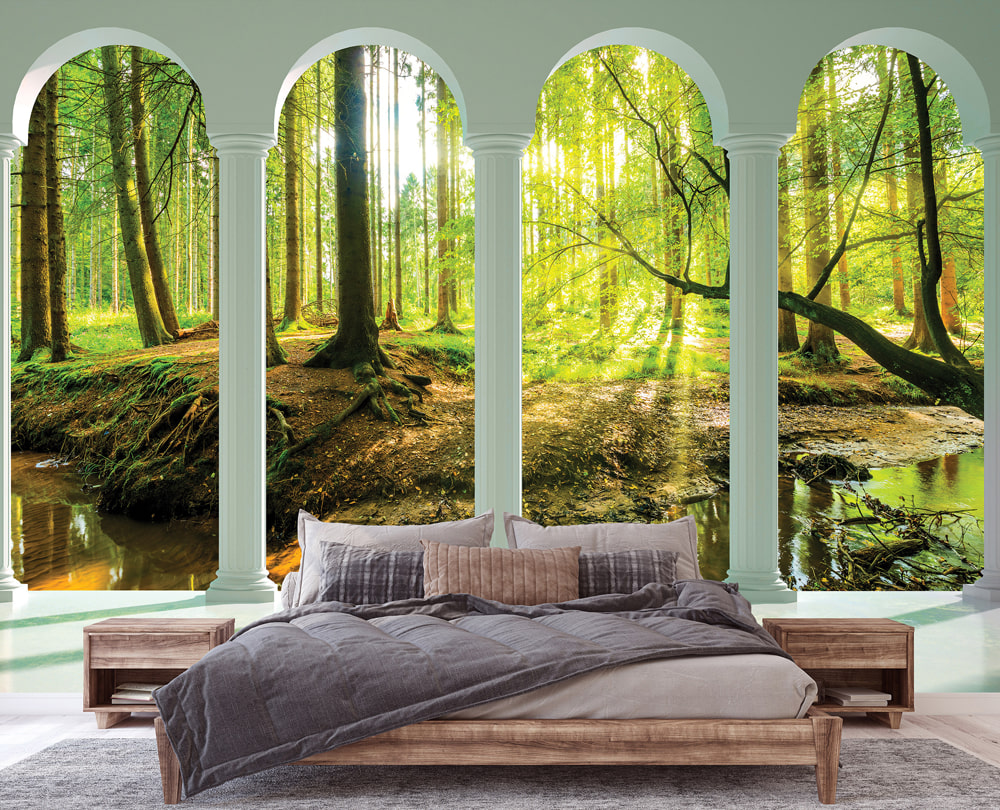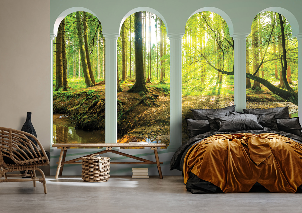 Ge rummet ett harmoniskt lyft med 3D Fönster Terrass Pelare Grön Skog naturfototapet. Denna unika fototapet har ett storslaget motiv inspirerat av naturens skönhet, och är det perfekta valet för att snabbt ge nytt liv åt alla miljöer. Tapeten är tryckt på högkvalitativ, miljövänlig non-woven-väv med starka färger och tydliga detaljer, och är enkel att montera tack vare det medföljande limmet. Oavsett om du väljer vardagsrum, sovrum eller kontor så tillför 3D Fönster Terrass Pelare Grön Skog tapeten rogivande naturscener och tidlös elegans till ditt hem.