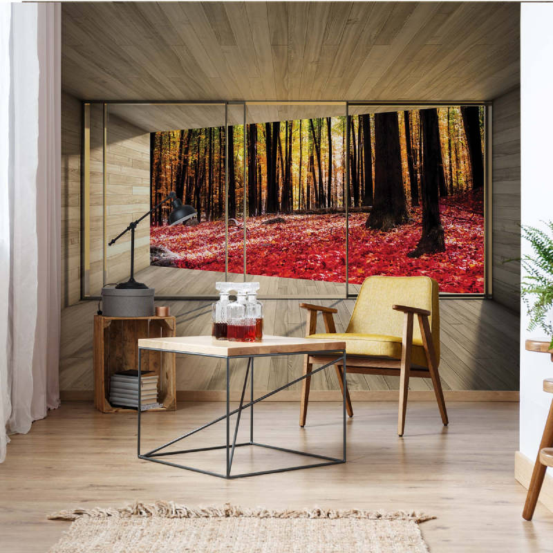 Ge rummet ett harmoniskt lyft med Höstskog 3D Modern Fönster naturfototapet. Denna unika fototapet har ett storslaget motiv inspirerat av naturens skönhet, och är det perfekta valet för att snabbt ge nytt liv åt alla miljöer. Tapeten är tryckt på högkvalitativ, miljövänlig non-woven-väv med starka färger och tydliga detaljer, och är enkel att montera tack vare det medföljande limmet. Oavsett om du väljer vardagsrum, sovrum eller kontor så tillför Höstskog 3D Modern Fönster tapeten rogivande naturscener och tidlös elegans till ditt hem.