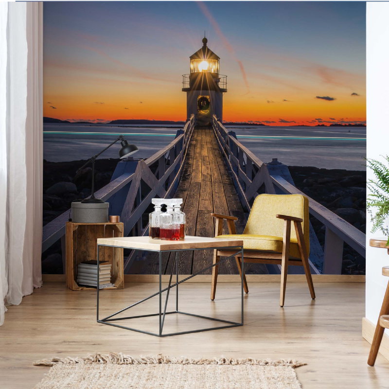 Ta in lugnet och skönheten från kust, hav och sjöar med Fyr I Solnedgången fototapet i ditt hem eller arbetsrum. Denna vackra mural fångar rofyllda strandvyer, havsvågor, pirar och stenbågar i livfulla färger på slitstark, miljövänlig non-woven-väv. Enkel montering med medföljande lim gör det lätt att förvandla rummet till en stilfull oas. Perfekt för vardagsrum, sovrum, kontor eller avslappningsytor med kustnära känsla.