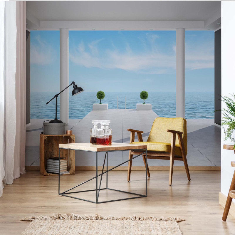 Ta in lugnet och skönheten från kust, hav och sjöar med 3D-Penthousevy Hav & Himmel fototapet i ditt hem eller arbetsrum. Denna vackra mural fångar rofyllda strandvyer, havsvågor, pirar och stenbågar i livfulla färger på slitstark, miljövänlig non-woven-väv. Enkel montering med medföljande lim gör det lätt att förvandla rummet till en stilfull oas. Perfekt för vardagsrum, sovrum, kontor eller avslappningsytor med kustnära känsla.