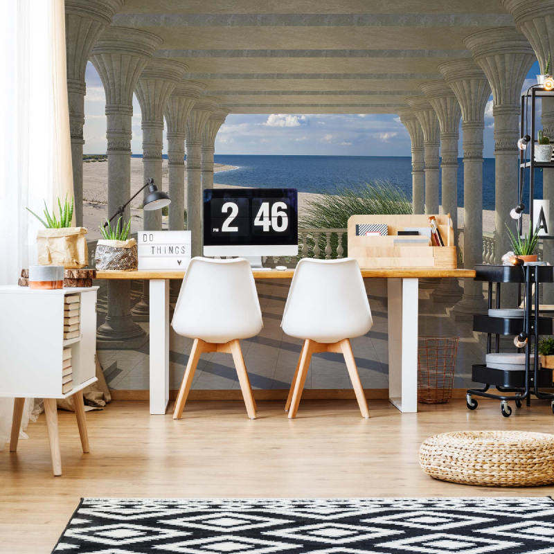 Ta in lugnet och skönheten från kust, hav och sjöar med 3D Kuststrand Vy Genom Kolonner fototapet i ditt hem eller arbetsrum. Denna vackra mural fångar rofyllda strandvyer, havsvågor, pirar och stenbågar i livfulla färger på slitstark, miljövänlig non-woven-väv. Enkel montering med medföljande lim gör det lätt att förvandla rummet till en stilfull oas. Perfekt för vardagsrum, sovrum, kontor eller avslappningsytor med kustnära känsla.