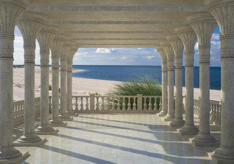 3D Kuststrand Vy Genom Kolonner