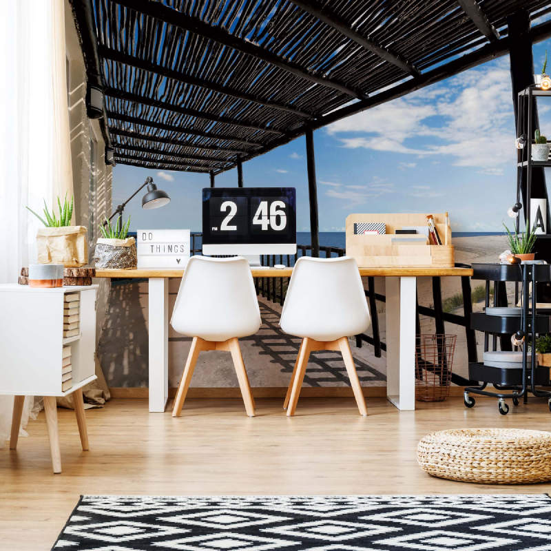 Ta in lugnet och skönheten från kust, hav och sjöar med Terrassutsikt Över Stranden fototapet i ditt hem eller arbetsrum. Denna vackra mural fångar rofyllda strandvyer, havsvågor, pirar och stenbågar i livfulla färger på slitstark, miljövänlig non-woven-väv. Enkel montering med medföljande lim gör det lätt att förvandla rummet till en stilfull oas. Perfekt för vardagsrum, sovrum, kontor eller avslappningsytor med kustnära känsla.