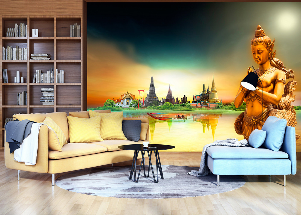Skapa en rogivande och elegant atmosfär med Asiatisk Thailand Buddha stilllife-fototapet. Med lugnande Zen-inspirerade motiv, skira orkidéer, glittrande spa-stenar och fridfulla mandalor ger denna mural en känsla av avkoppling och meditation. Tryckt med levande färger på slitstark och miljövänlig non-woven-väv. Enkel montering med medföljande lim. Perfekt för sovrum, spa, yogastudios eller meditationsrum som söker stilren och avslappnande inredning.