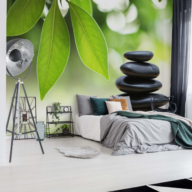 Skapa en rogivande och elegant atmosfär med Spa Stenar stilllife-fototapet. Med lugnande Zen-inspirerade motiv, skira orkidéer, glittrande spa-stenar och fridfulla mandalor ger denna mural en känsla av avkoppling och meditation. Tryckt med levande färger på slitstark och miljövänlig non-woven-väv. Enkel montering med medföljande lim. Perfekt för sovrum, spa, yogastudios eller meditationsrum som söker stilren och avslappnande inredning.