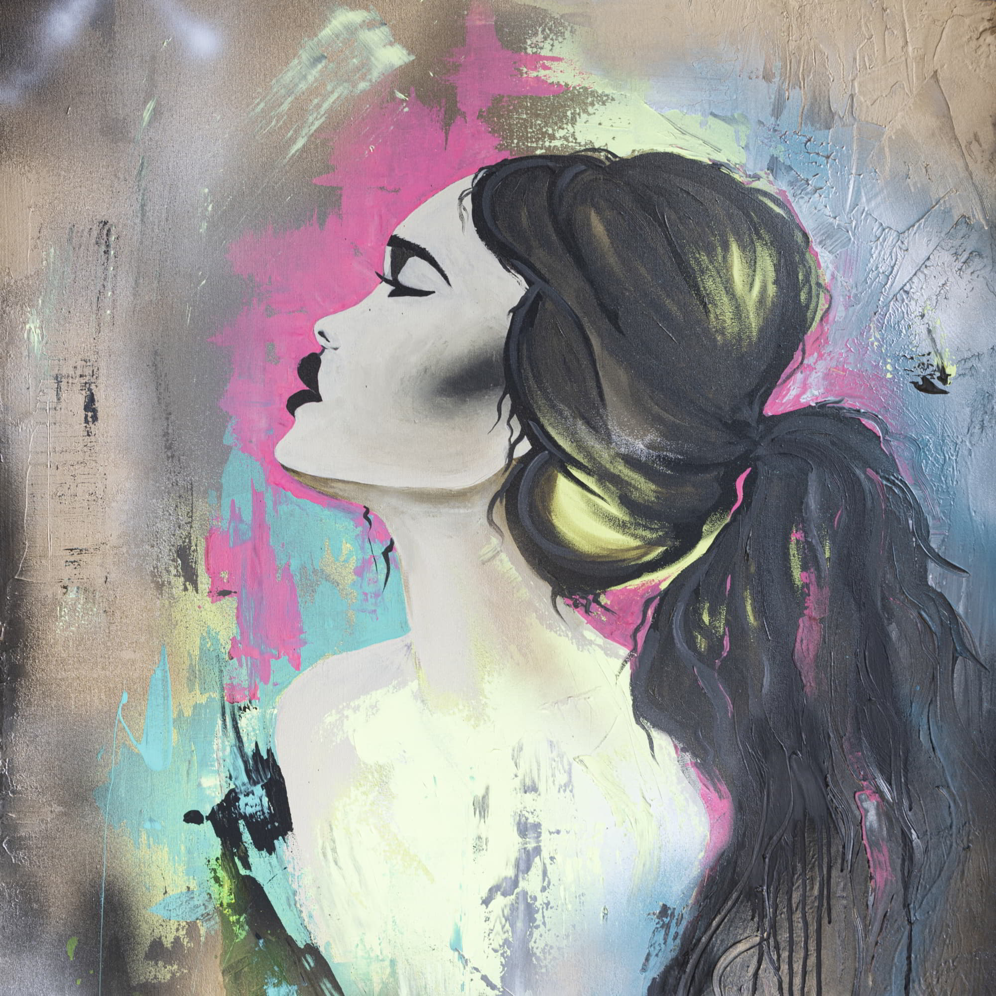 Canvastavla "Graffiti Girl" - Abstrakt konst - Original väggkonst - Konst av Anete Purine-Purite - Förhöj din inredning med exklusiv väggdekor från Walldorado