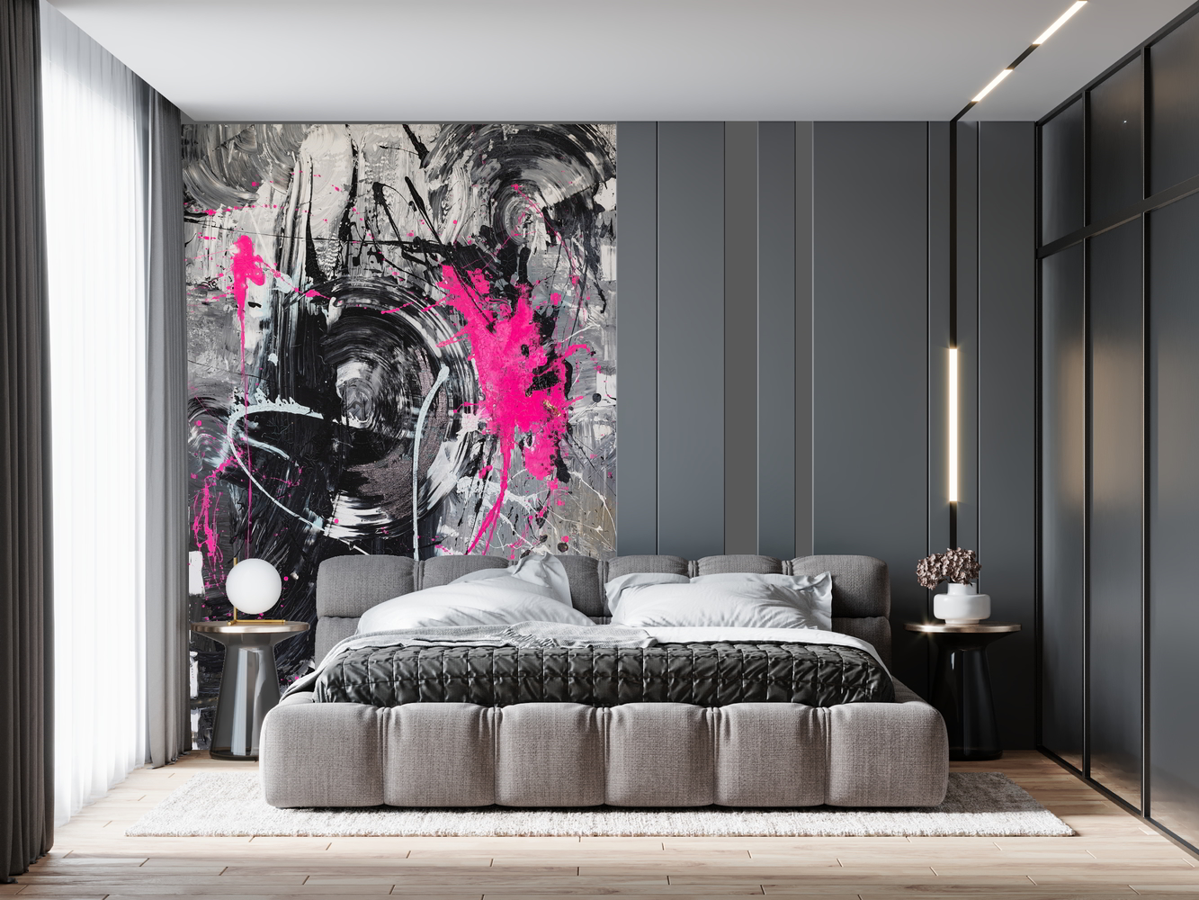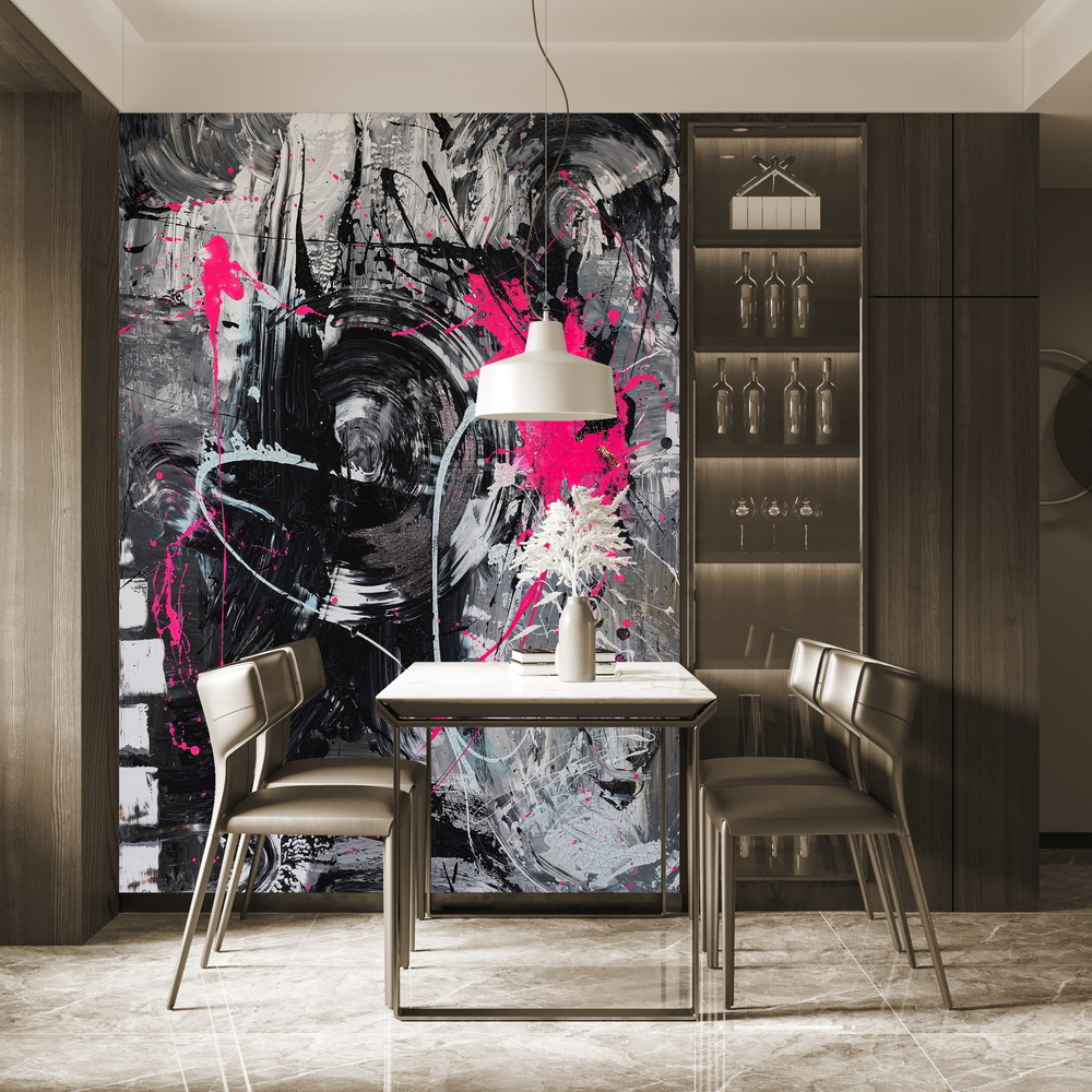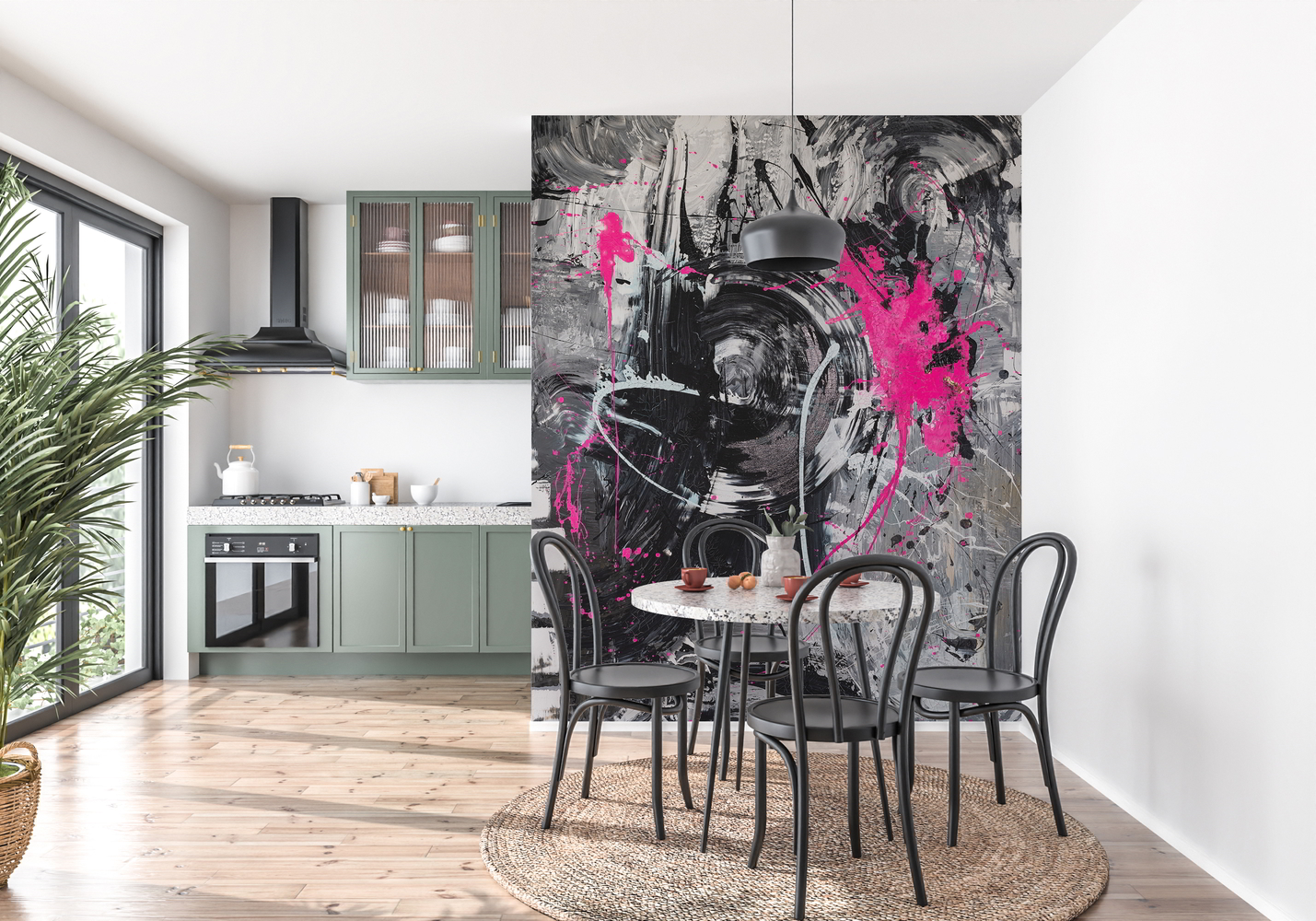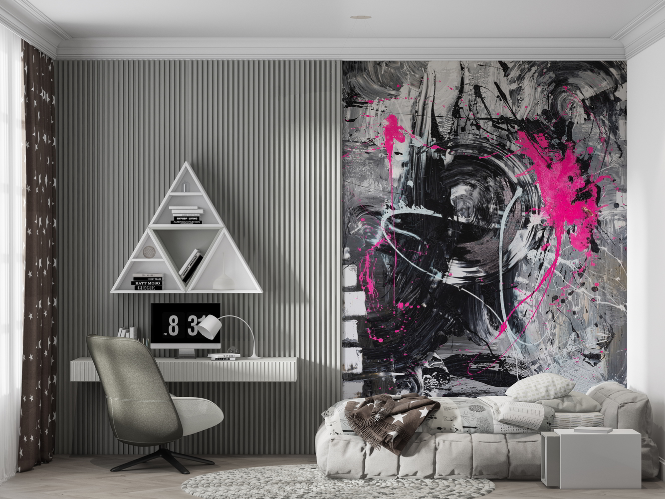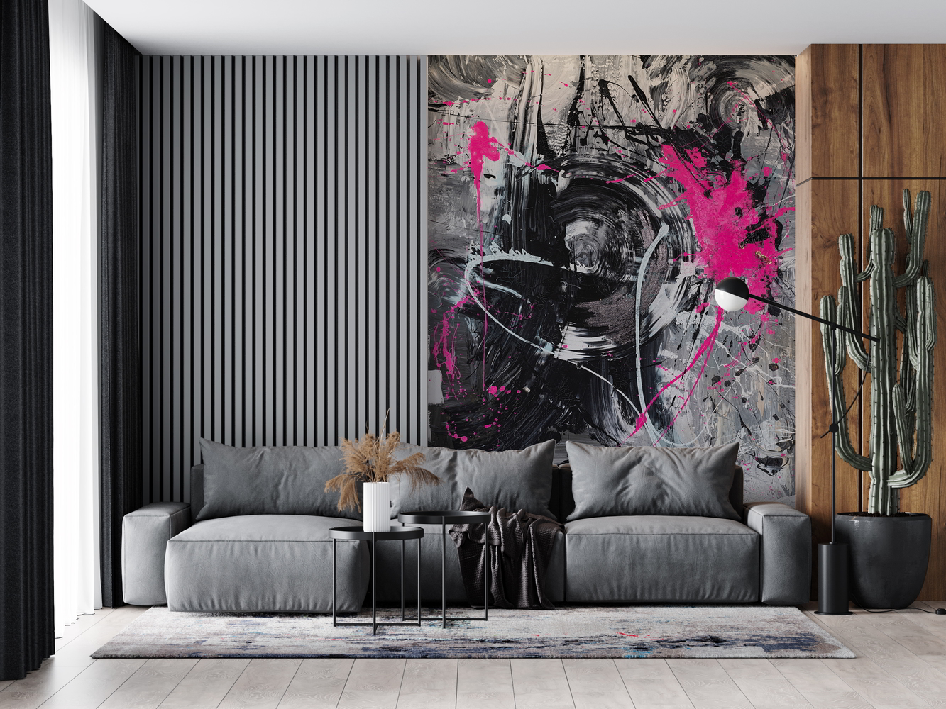 Lyft upp ditt boende med den förtrollande dragningskraften hos Anete Purina-Purites ikoniska konstverk, "Pink Chaos," vackert fångat i vår fototapet "Rosa Harmoniburst". Denna digitalt tryckta non-woven mästerverk väver samman nyanser av rosa på ett intrikat sätt, punkterat av fängslande utbrott av vitt, svart och grått. Resultatet är en visuellt fantastisk symfoni av färger som utstrålar vitalitet och spontanitet.